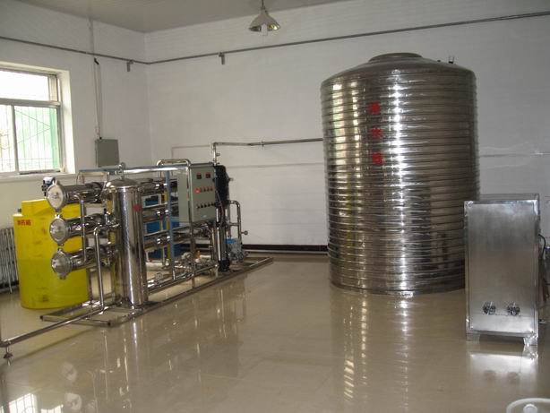純凈水供給系統是由純水泵、純水箱和輸水管網組成,經后處理消毒后的純凈水進入純水箱由純水泵經直飲水管道輸送到各用水點的管線機,這樣用水點直接通過水龍頭就可以喝到衛生可口的純凈水了。同時在系統中設立循環回水管路,未使用的純凈水經循環回水管路回到純水機房,再經過紫外線殺菌器和精密過濾器對回水進行二次處理后,循環進入貯水箱,貯水箱里的純水再次輸送到管道中,以保證管道中供應的純凈水是新鮮的純凈水。